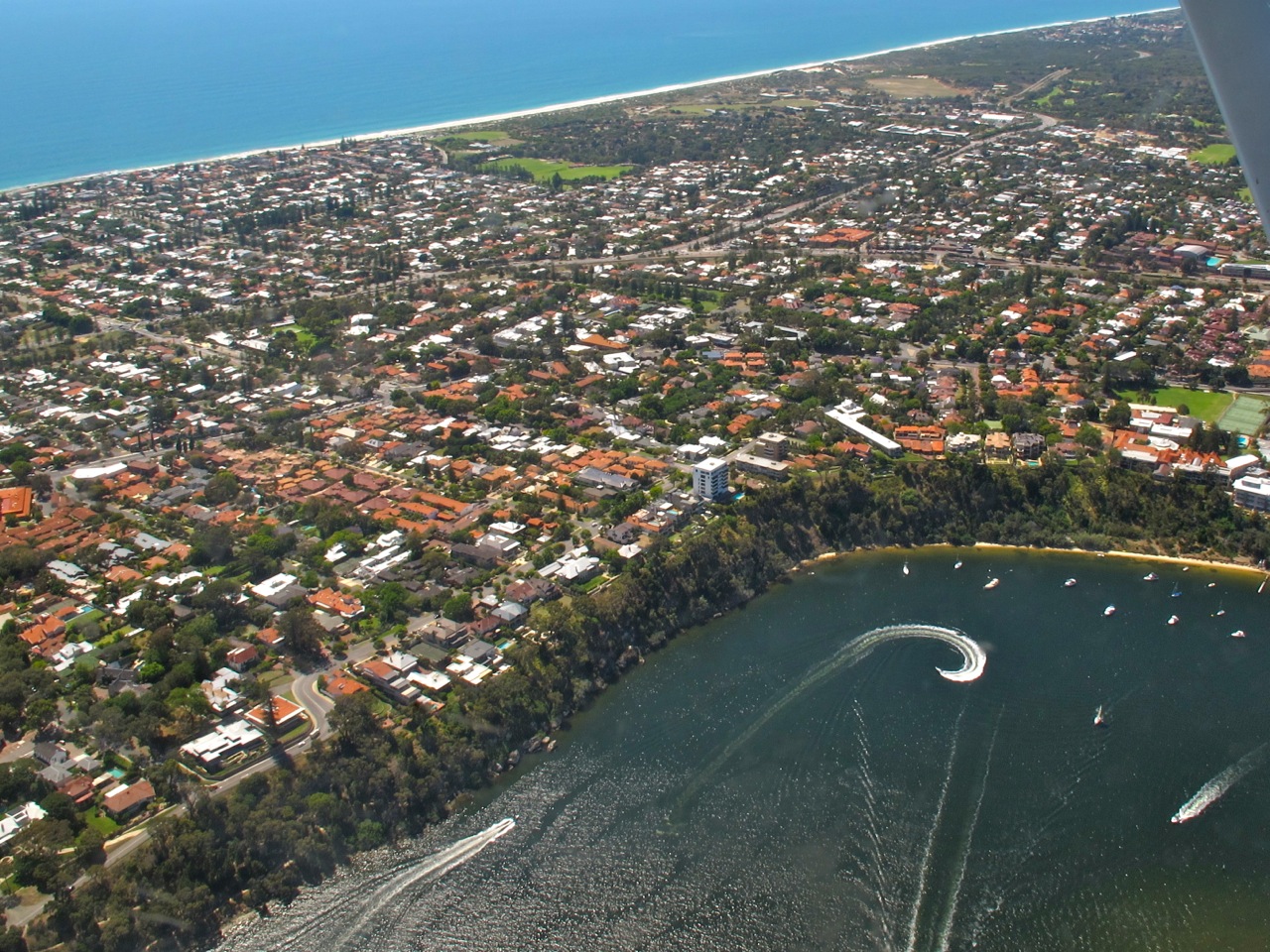 he turbulence continued so I decided once again to just ignore it and this time enjoy the views. It was pretty hazy, but the visibility was still great and the views awesome. I was impressed with some of the houses nestled in the dunes along the coast past Lake Clifton. With the ridiculously strong headwind, the leg from Bunbury to Jandakot was going to take 71 minutes, which is completely nuts. Even those super cool Mooney dudes would have taken an hour. While nearing the southern end of the Peel Inlet, I tuned in to the Jandakot ATIS to get the arrival information. In some ways I wish I didn’t, the 22 knots maximum cross-wind got my attention pretty quickly.