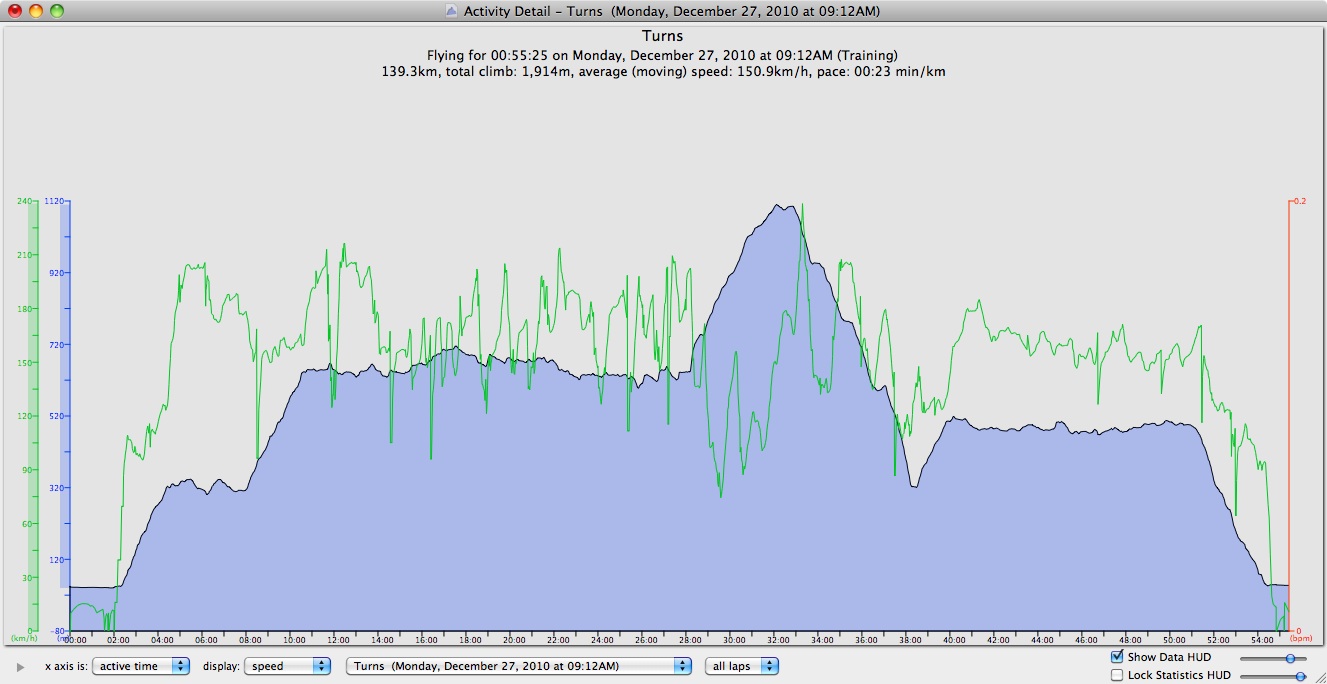 Here are some GPS maps of the flight. These were created using my cycling computer, a Garmin 305. The images are then generated by the Mac software called Ascent, which I use to track my cycling efforts.