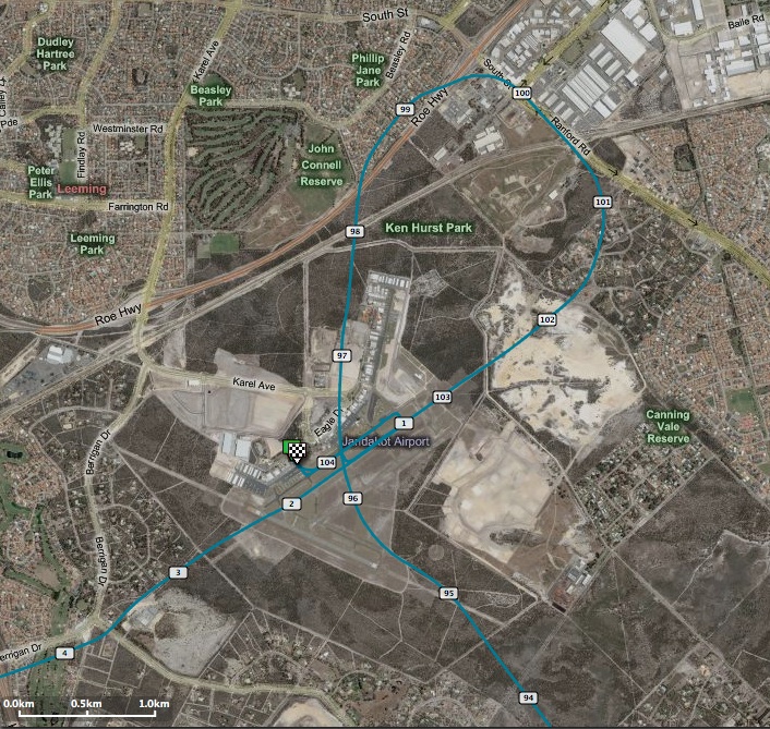 We approached Jandakot via Forrestdale Lake. My radio calls today were alot better, getting all the read backs right. A not insignificant help was using the LiveATC iPhone app to listen into and get used to calls. Anyway, the approach to Jandakot was over the airfield, joining the circuit downwind (to the North today) and around into runway 06L. I had controls through the decent and onto the ground. Adam claimed that I did it myself today 🙂 He guided me through every step and the landing was a big improvement from yesterday. Bring on the circuits, this landing thing is fun 🙂