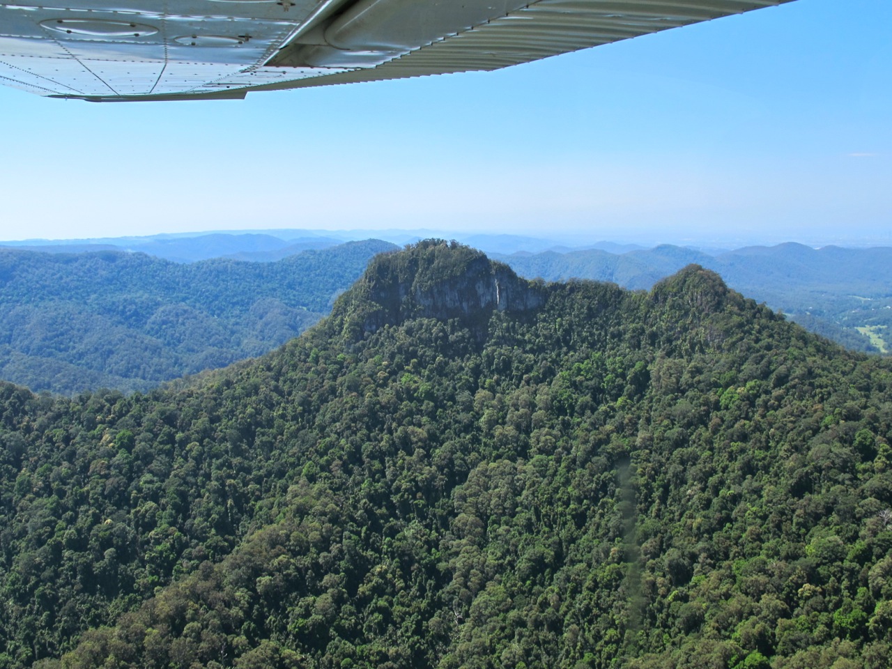 After overflying DreamWorld, we headed out towards the amazing looking Hinterlands.  The hills seemed to quickly rise towards us, but we had to wait till clearing the altitude boundaries.  At this point we climbed to about 4500 feet.  The first thing that dawns on you is that their is nowhere to conduct a forced landing.  So instead for the next 30 odd minutes you focused more on enjoying the scenery and listening closely to the hum of the Lycoming power plant out in front.  We flew a track through the Hinterland that had us flying between peaks and around the highest mountain in the area.  It was just awesome!