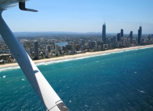 After this excitement, it was pretty must straight forward along the river till the tower identified us at Point Danger, nearing the end of the Tweed River.  We were requested to join right base.  It was at this stage that for the first time, “caution wake turbulence” actually made me think.  As we were turning base a jet was touching down in front.  With our low altitude, it meant those spinning vortexes would have been looming above us.  Cameron said that it is real for them every flight, but said he hadn’t experienced anything severe to date.